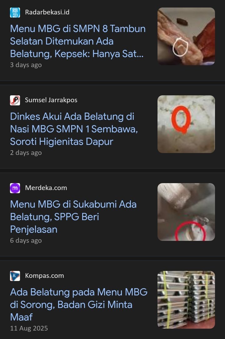 Akhir-akhir ini BELATUNG sering muncul di berita nasional karena ditemukan di makanan yang dibagikan ke anak-anak sekolah [MBG].