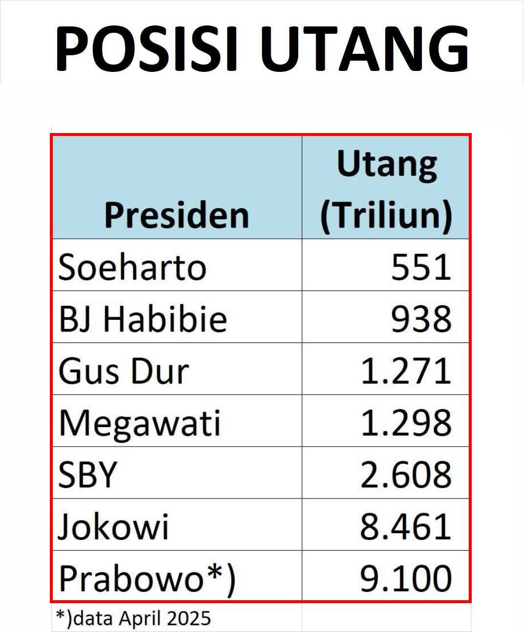 Adalah Jokowi si tukang utang terbesar sepanjang sejarah, 10 tahun dia berkuasa, utang nambah 5.800 triliun, alias 580 triliun per tahun. Dia membuat posisi utang 3,2x saat ditinggalkan SBY.