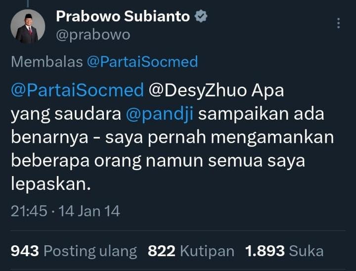 “Dan memang benar, beliau pernah menculik aktivis. Beliau sendiri yang mengaku, lewat akun twitternya, Pandji benar saya pernah mengamankan aktivis. Beliau bilangnya ‘mengamankan’, tapi kita tahu yang dimaksud nyulik,” ujar Pandji. (LIHAT SS DI ATAS)