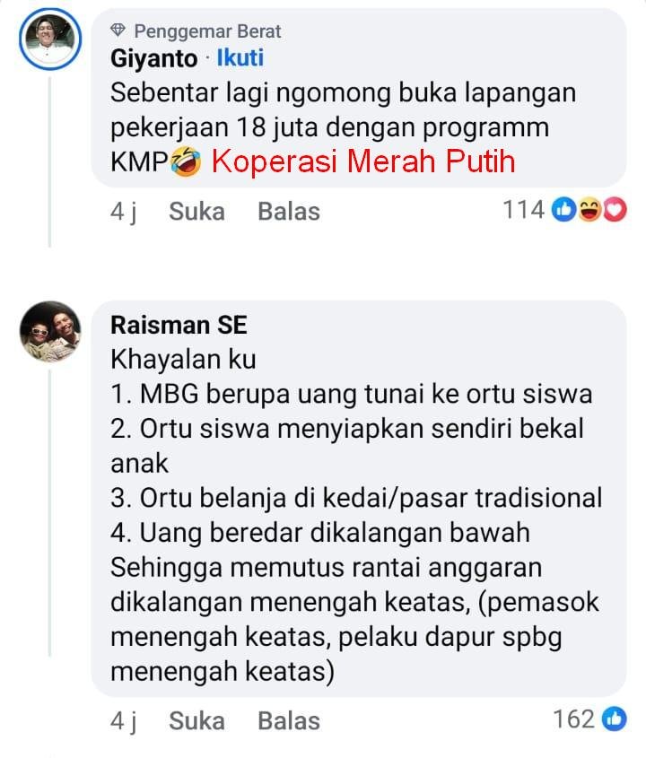 Dengan demikian, satu dapur MBG bisa menimbulkan pemasok sampai 10 atau 20 orang.