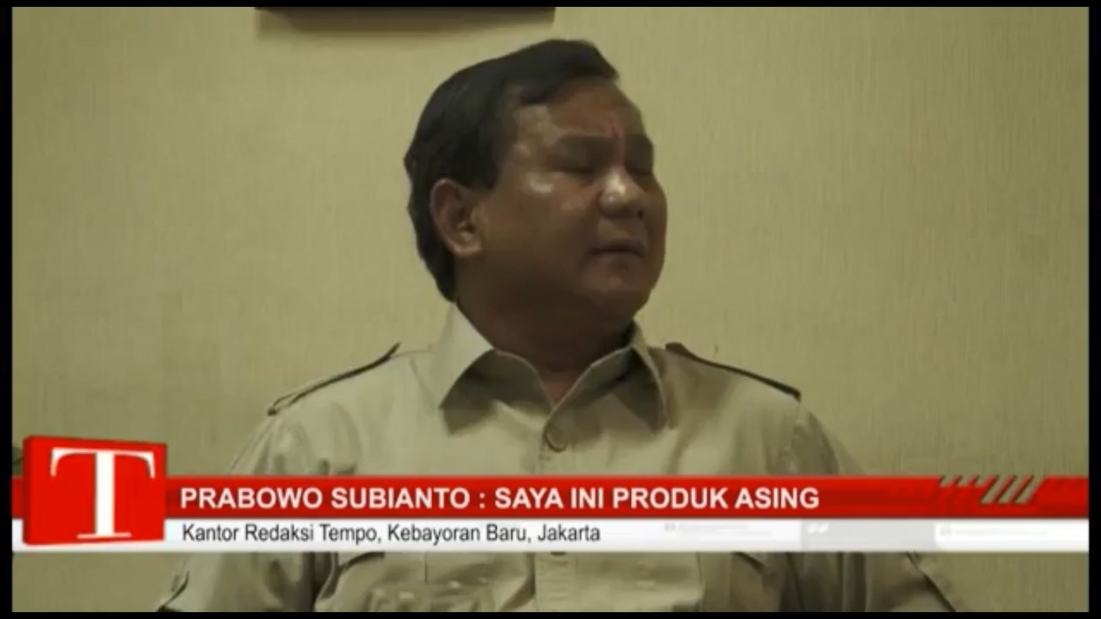 Dalam wawancara di kantor redaksi Tempo, Prabowo mengatakan tidak anti asing. Justru ia menegaskan bahwa dirinya merupakan produk asing yang pernah sekolah dan besar di beberapa negara.