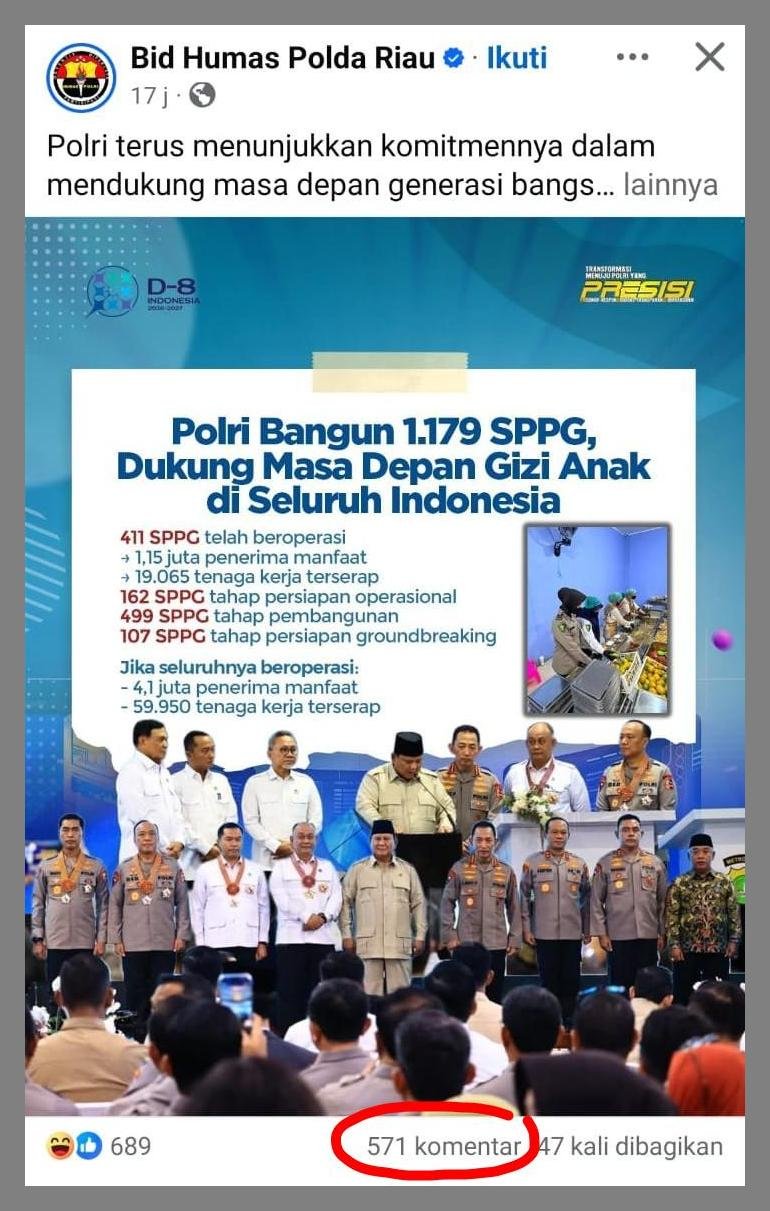 Polri terus menunjukkan komitmennya dalam mendukung masa depan generasi bangsa melalui pembangunan 1.179 SPPG di seluruh Indonesia. Program ini menjadi langkah nyata dalam memastikan pemenuhan gizi anak sekaligus membuka lapangan kerja bagi masyarakat. Hingga saat ini, ratusan SPPG telah beroperasi dan memberikan manfaat bagi jutaan penerima. Pembangunan yang terus berjalan diharapkan mampu memperluas jangkauan program secara merata. Bersama Polri, kita wujudkan generasi sehat menuju Indonesia yang lebih kuat serta Menjamin Ketahanan Pangan dan Gizi Untuk Anak Indonesia.