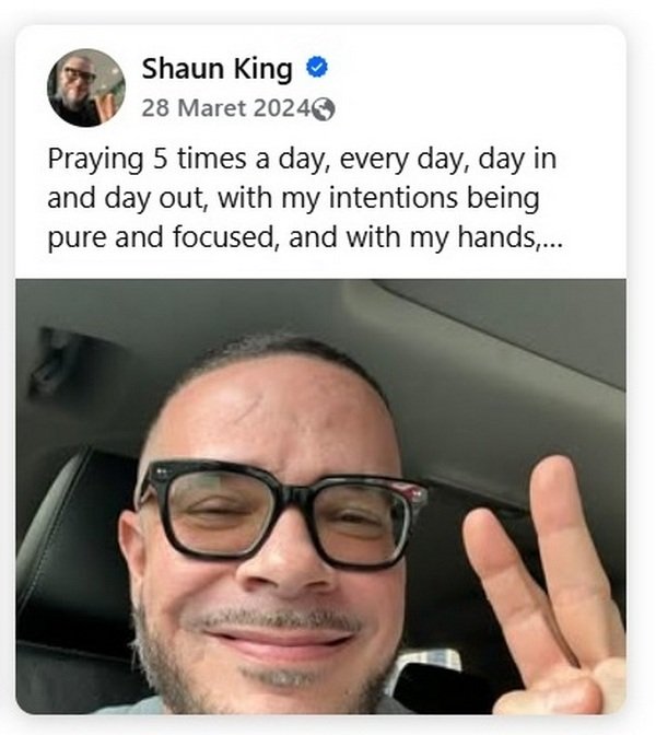- Menjadi Mualaf: Pada hari pertama Ramadan, 11 Maret 2024, Shaun King bersama istrinya, Rai King, resmi memeluk agama Islam. Ia menyatakan bahwa keputusannya ini sangat dipengaruhi oleh keteguhan iman warga Gaza di tengah konflik yang sedang berlangsung.
