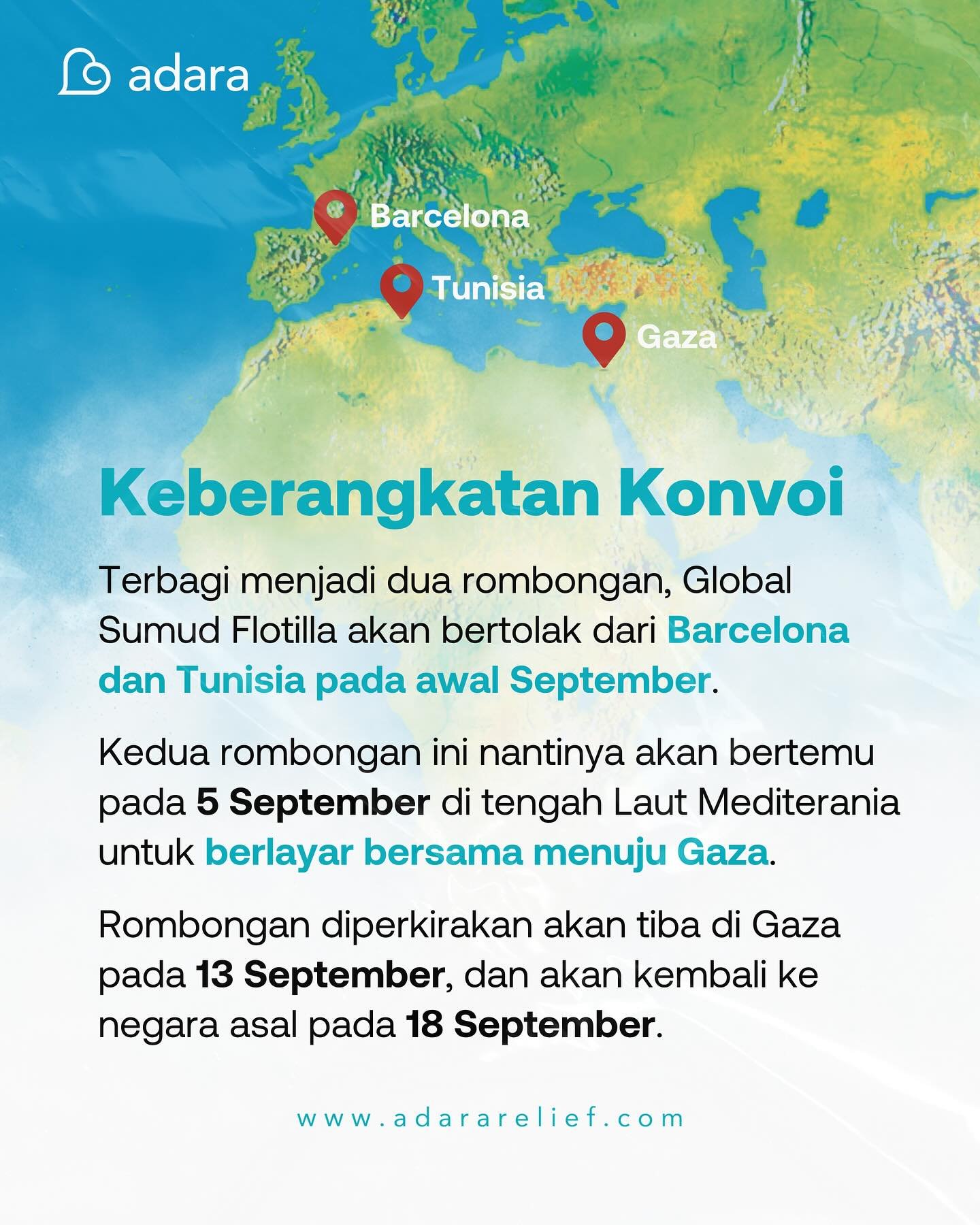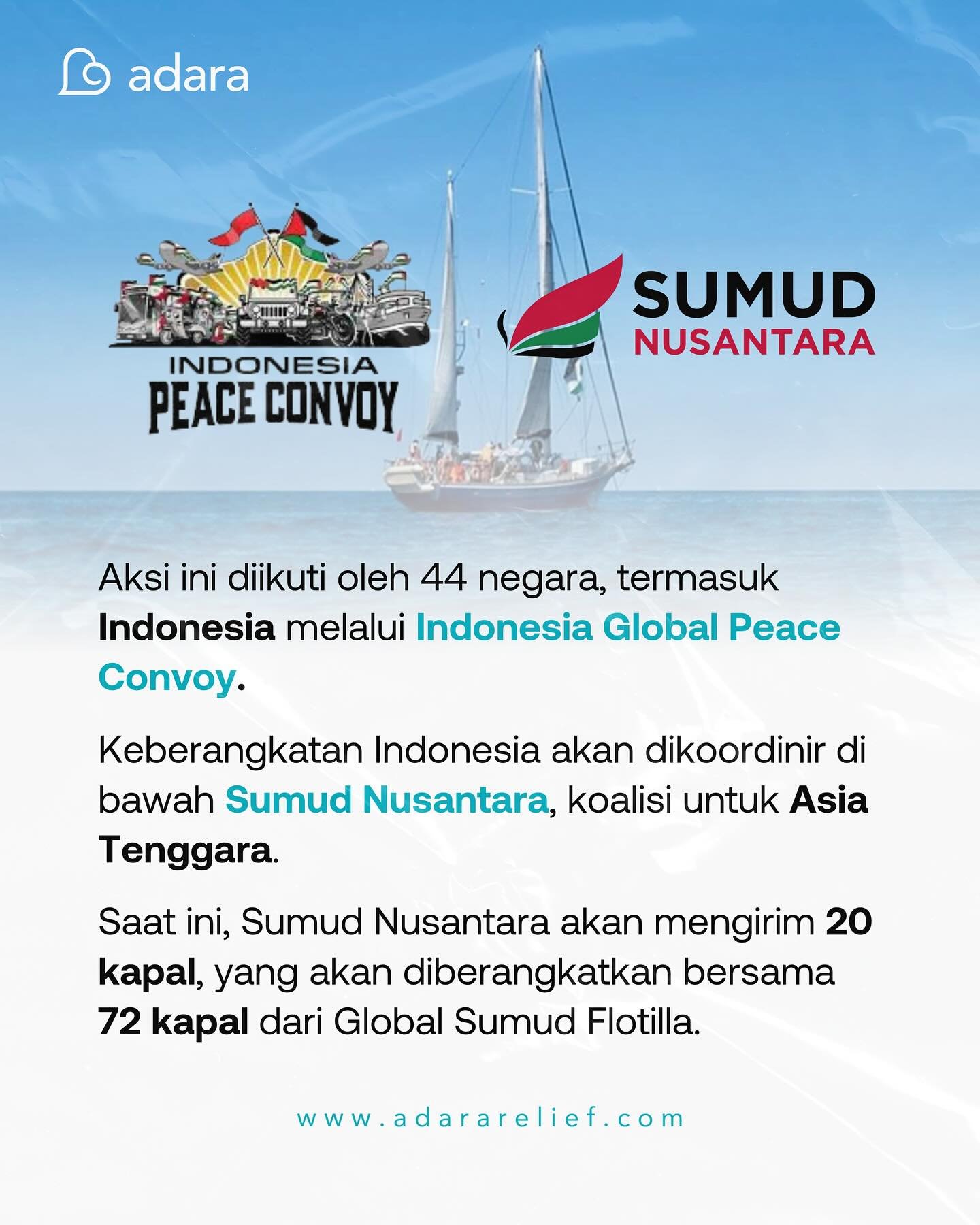Indonesia menjadi bagian dalam konvoi Global Sumud Flotilla yang disebut sebagai armada sipil dunia terbesar sepanjang sejarah yang diikuti 44 negara.