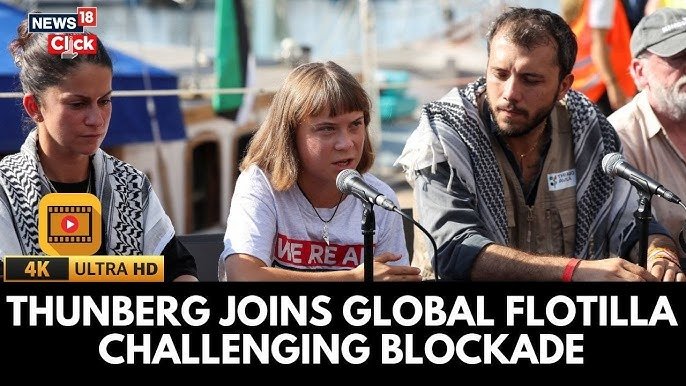 Aktivis dunia Greta Thunberg kembali ikut berlayar bersama 20 kapal Global Sumud Flotilla menuju Gaza. Ia menjadi wajah simbolis solidaritas dunia menentang blokade Israel.