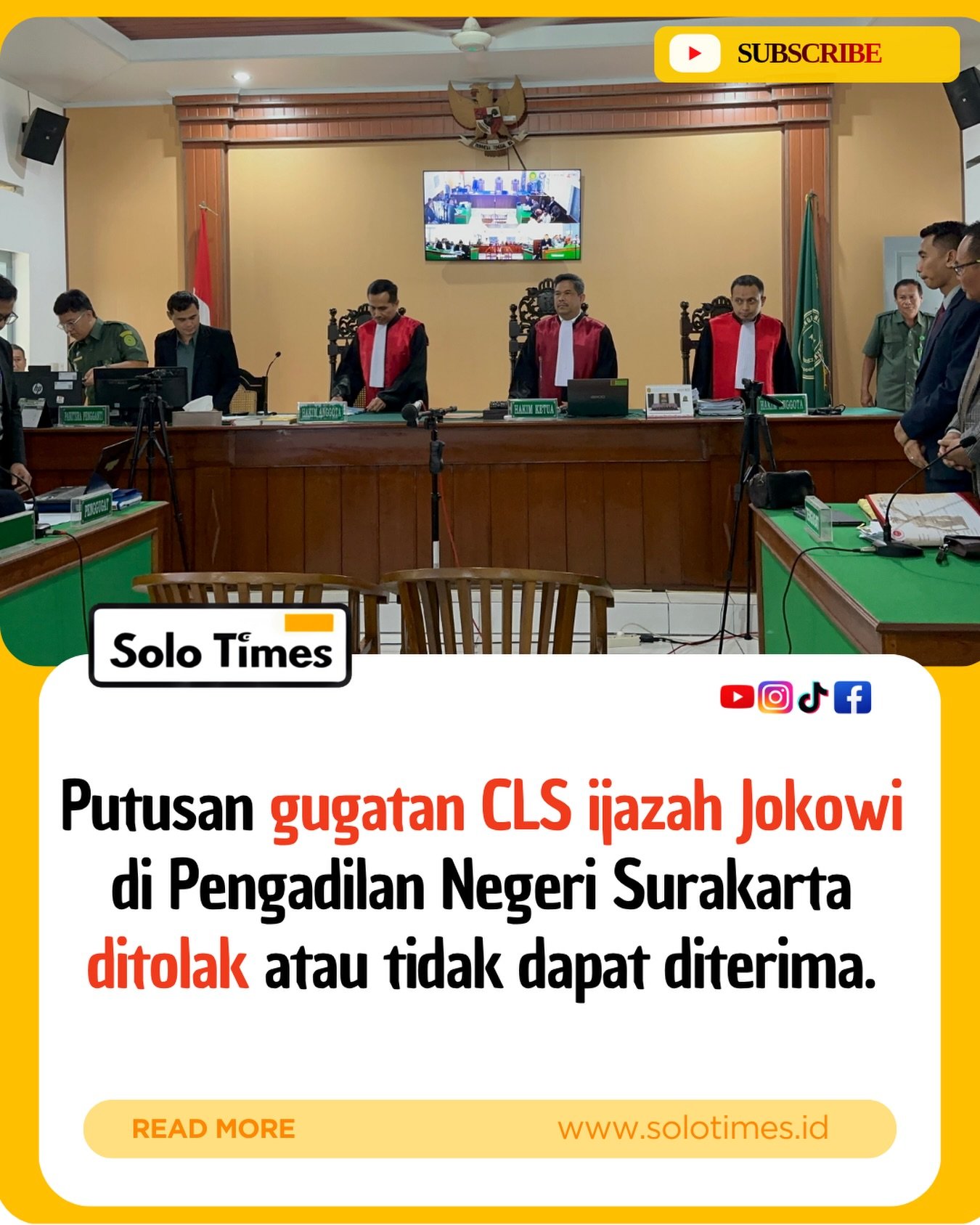 PUTUSAN KASUS IJAZAH PALSU JOKOWI DI SOLO: KEMBALI DINYATAKAN TIDAK DAPAT DITERIMA (N.O.), MESKI IJAZAH JOKOWI TAK JUGA DINYATAKAN ASLI