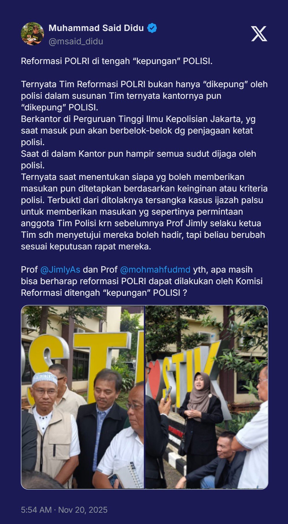 Prof @JimlyAs dan Prof @mohmahfudmd yth, apa masih bisa berharap reformasi POLRI dapat dilakukan oleh Komisi Reformasi ditengah “kepungan” POLISI ?