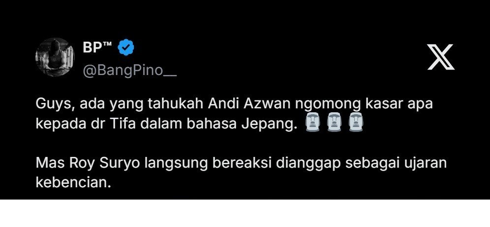 Ketum Relawan Jokowi Mania, Andi Azwan, ngomong kasar kepada dr Tifa dalam bahasa Jepang saat debat soal ijazah Jokowi di acara TV.