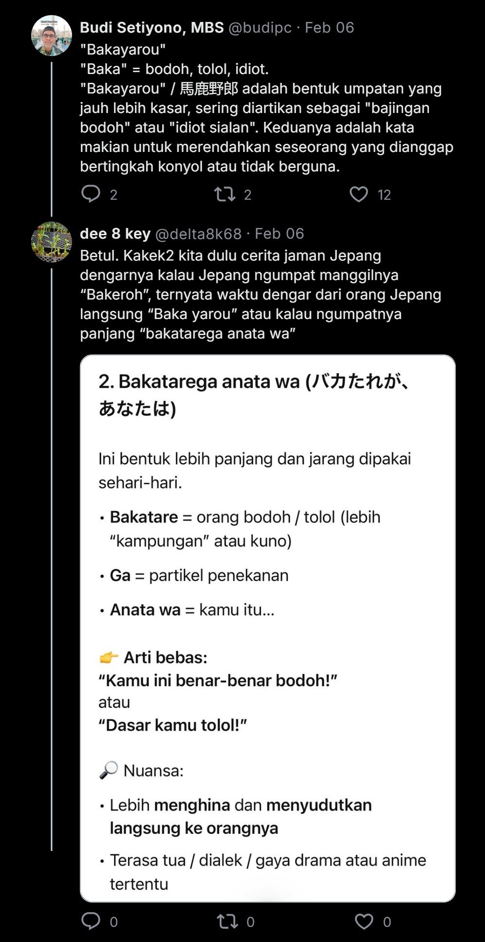 Netizen X kemudian menjelaskan kata “Bakayarou” yang diduga diucapkan Andi Azwan kepada Dokter Tifa.
