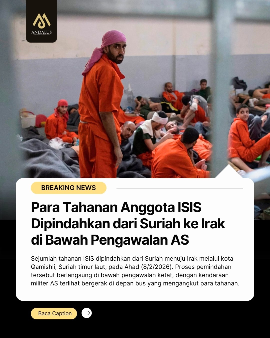 Lebih dari 2.200 tahanan ISIS telah dipindahkan dari Suriah ke Irak dalam sebuah operasi yang dipimpin Amerika Serikat, menurut pernyataan pejabat Irak kepada AFP pada Sabtu (7/2/2026). Pemindahan ini merupakan bagian dari rencana yang lebih luas untuk memindahkan hingga sekitar 7.000 tahanan ISIS dari wilayah Suriah.