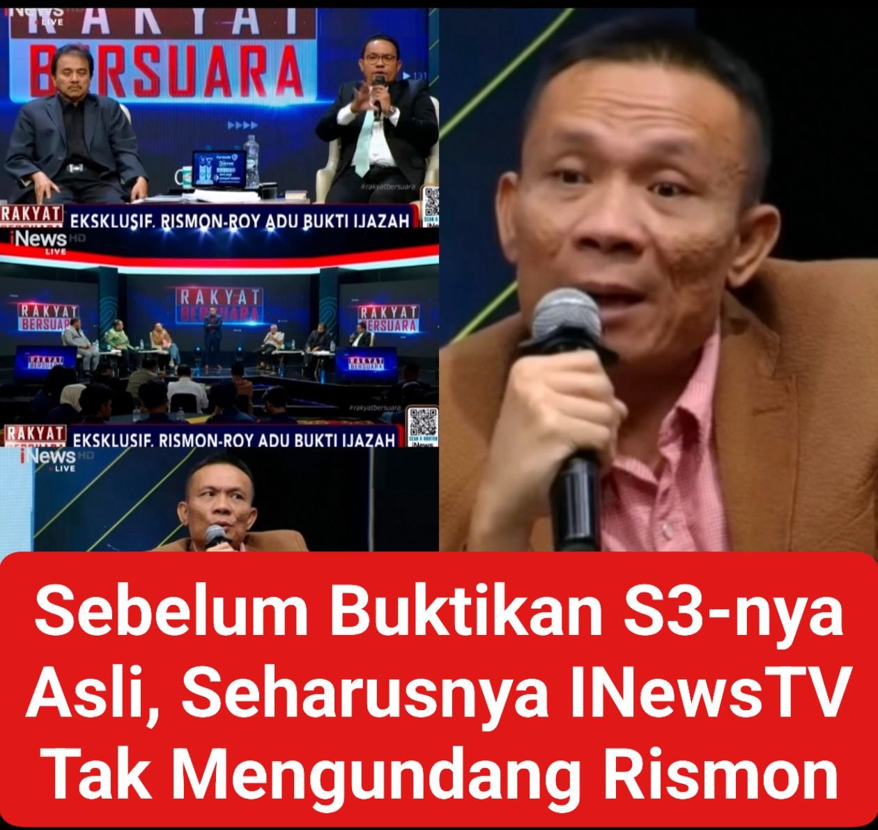 Seharusnya, iNewsTV melalui program Rakyat Bersuara atau Aiman Witjaksono, tak lagi mengundang Rismon, demi menjaga etika publik yang lurus dan tak mudah dibengkokkan, karena kepentingan seperti yang dilakukan Rismon.