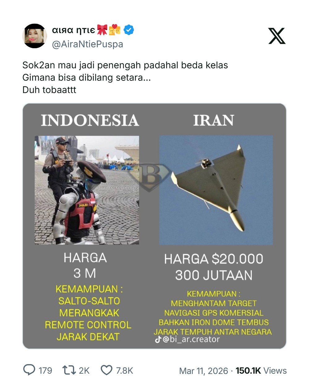 Drone Iran memang jauh lebih murah tapi fungsinya cuma untuk militer, menyerang target yang diinginkan.