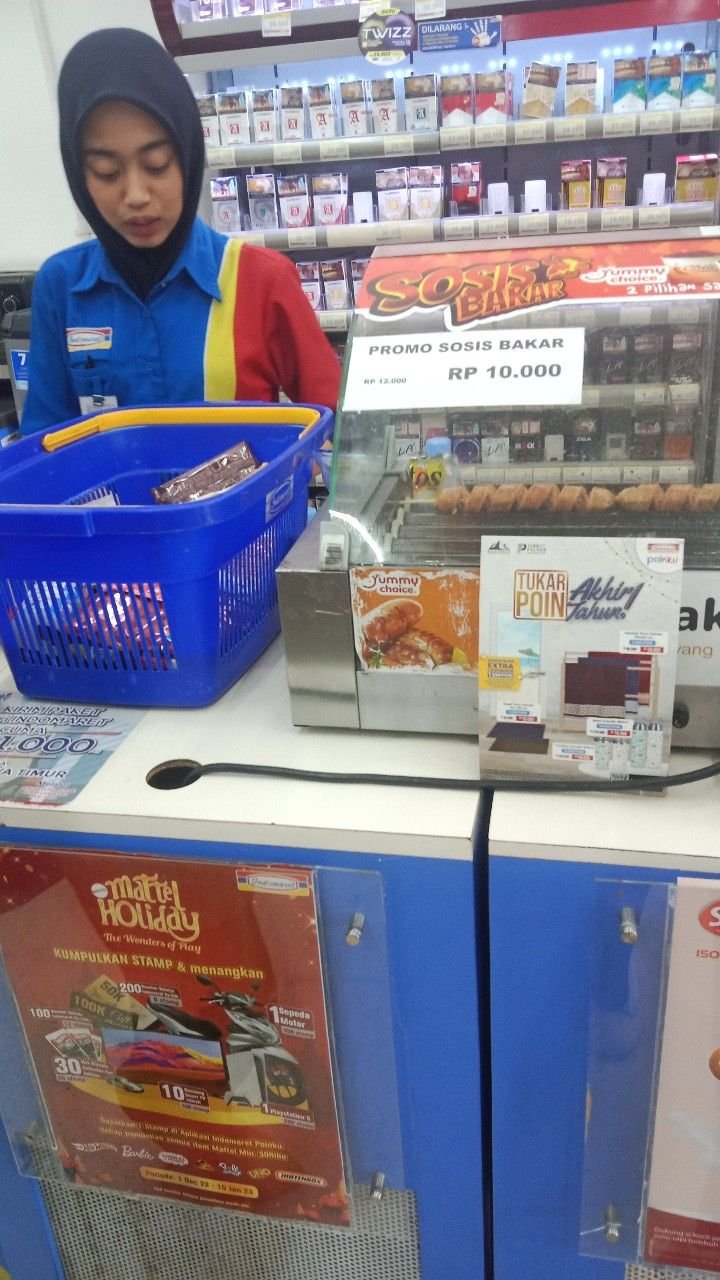 Tadi di Indomaret, saya berdiri di antrean kasir.