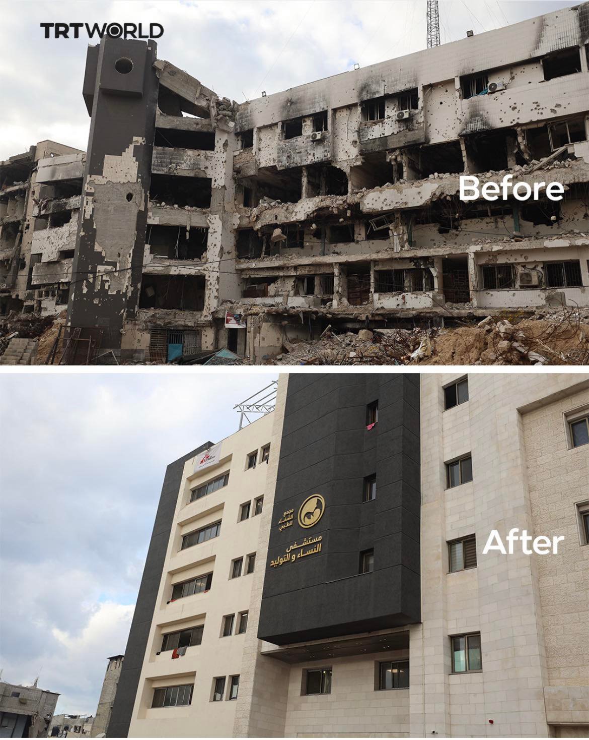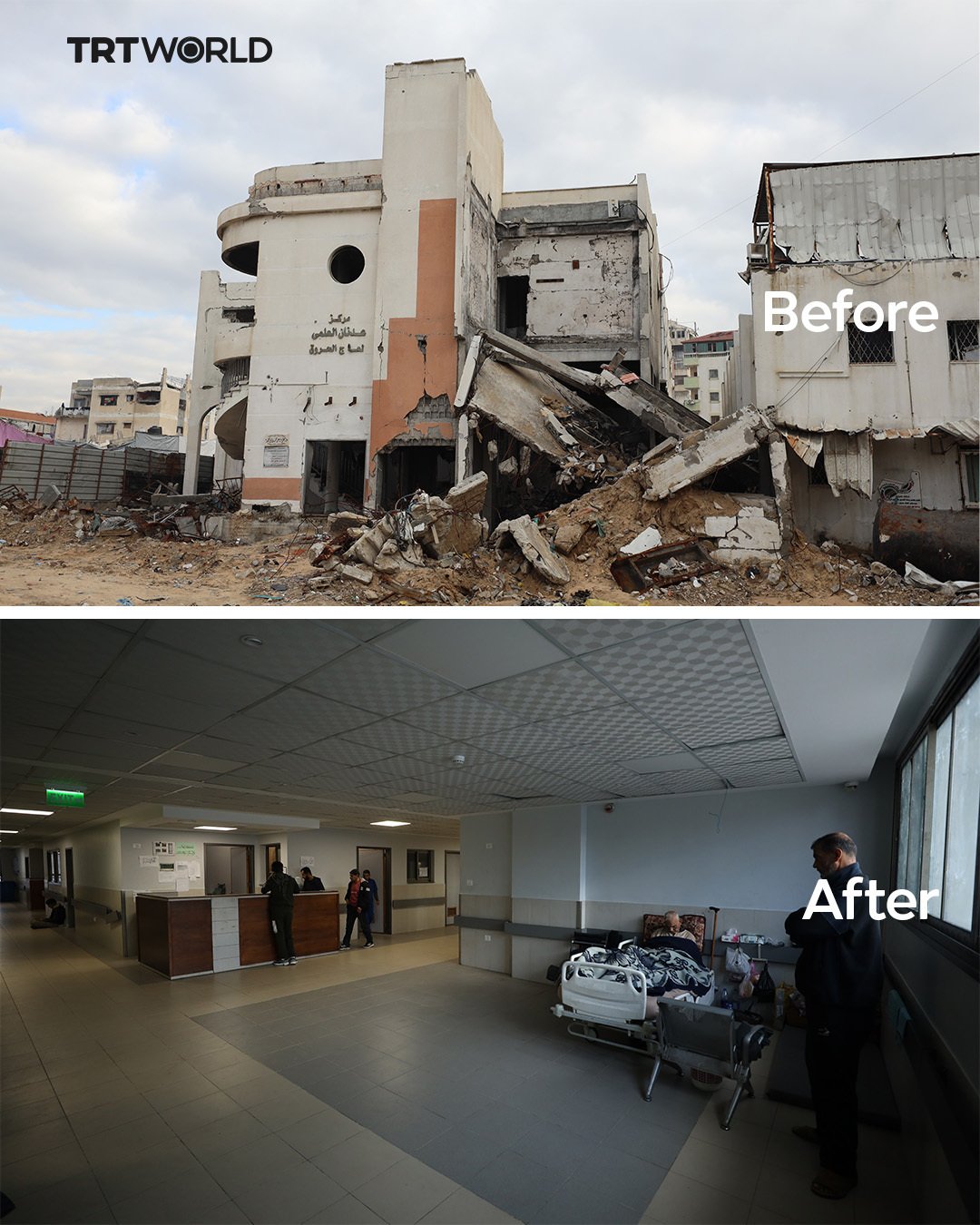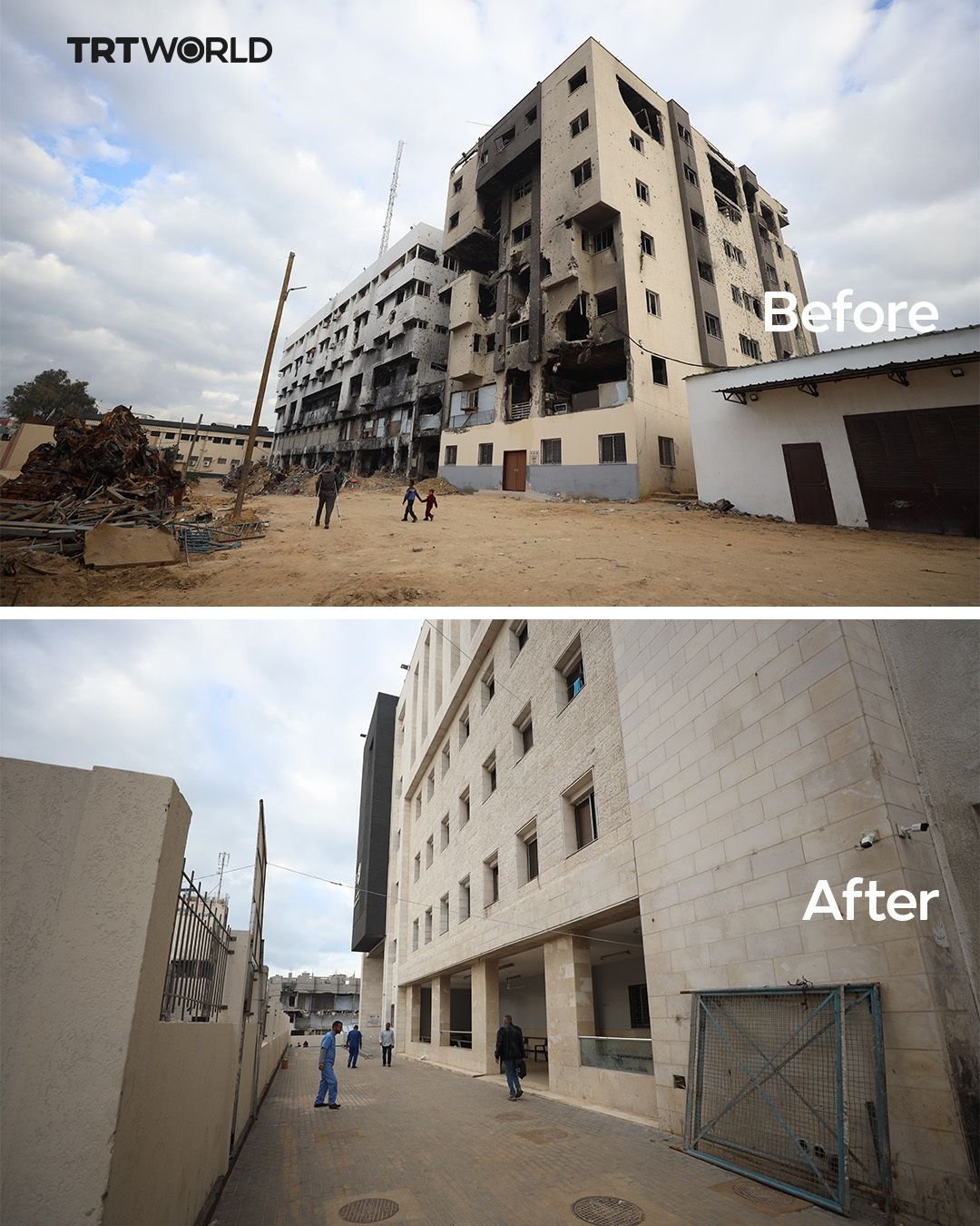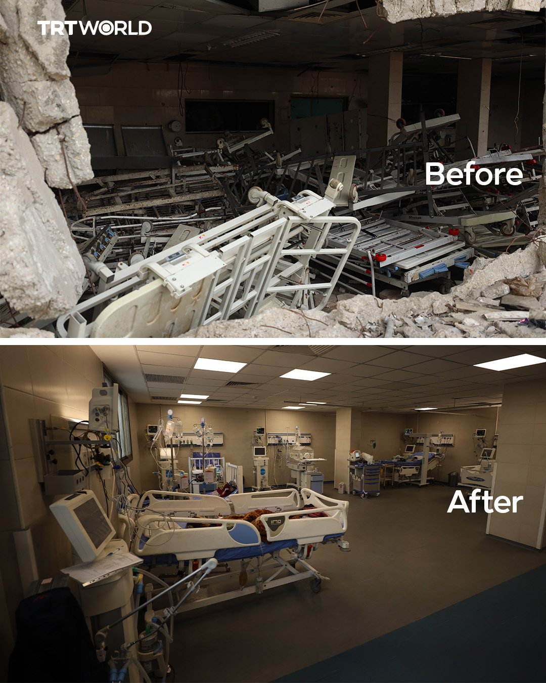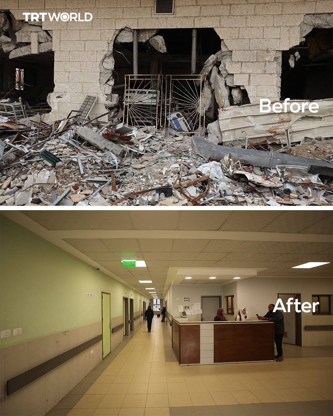 Ekspansi baru-baru ini di dalam kompleks rumah sakit telah memulihkan layanan penting, termasuk perawatan gawat darurat, klinik rawat jalan, dan area perawatan rawat inap. Departemen-departemen yang baru selesai dibangun ini dimaksudkan untuk membantu mengelola lonjakan pasien yang besar dan mempertahankan akses ke perawatan penyelamatan jiwa di tengah tantangan yang terus berlanjut.