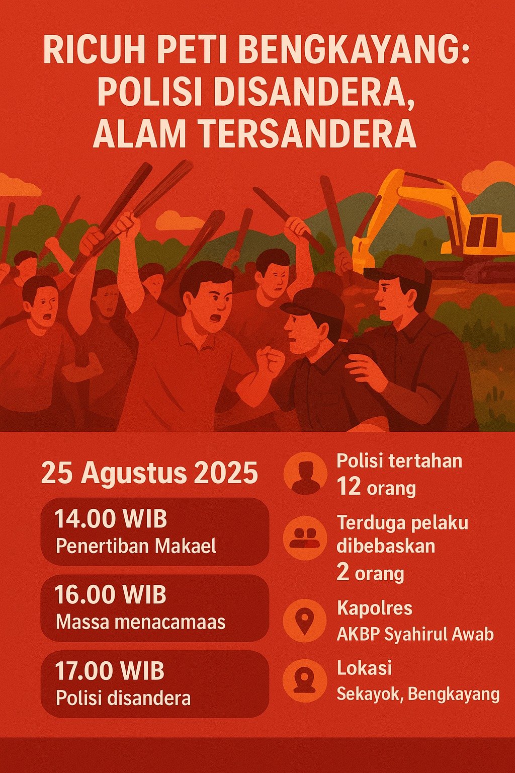 Senin sore, 25 Agustus 2025, Sekayok mendadak riuh. Polres Bengkayang bersama tim gabungan mencoba menertibkan aktivitas PETI.