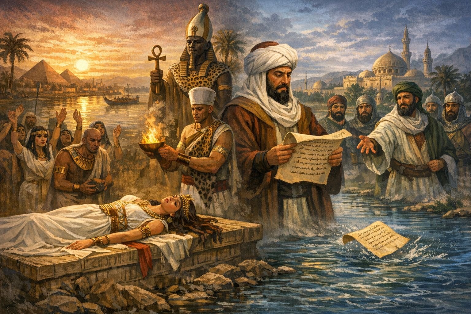 Penduduk Mesir memiliki tradisi kuno untuk mengorbankan seorang gadis perawan dengan melemparkannya ke sungai agar airnya mengalir.
