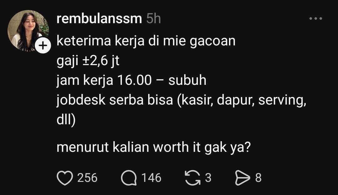 Makanya dari kemarin kasus preman-preman kampung di Surabaya dan Pekalongan yang demo menuntut Mie Gacoan itu bukan menuntut biar diterima kerja di situ, tapi menuntut agar parkirnya mereka yang kelola, karen hasil parkirnya itu jauuuuuuuuuhhhhh lebih besar dibanding gaji karyawan.