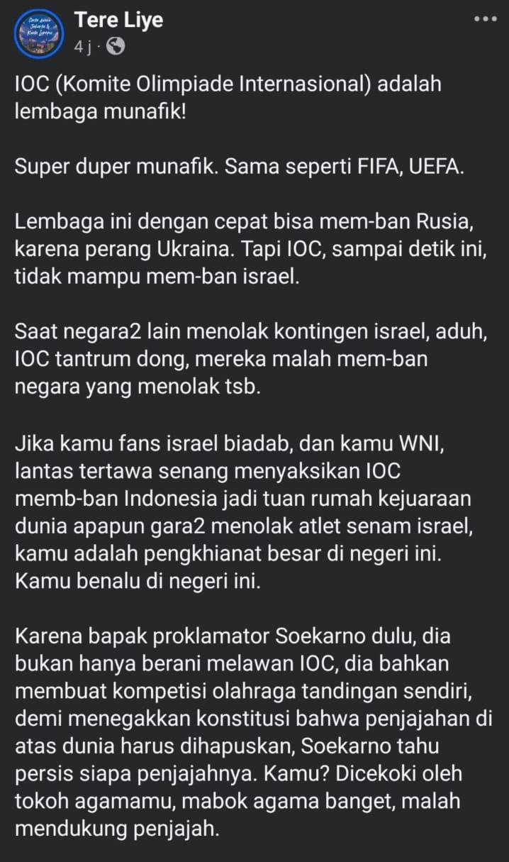 IOC Sanksi Indonesia karena Tolak Atlet Israel