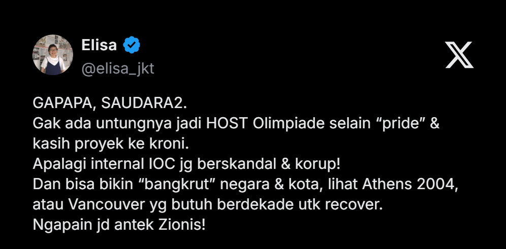 Gak ada untungnya jadi HOST Olimpiade selain βprideβ & kasih proyek ke kroni.