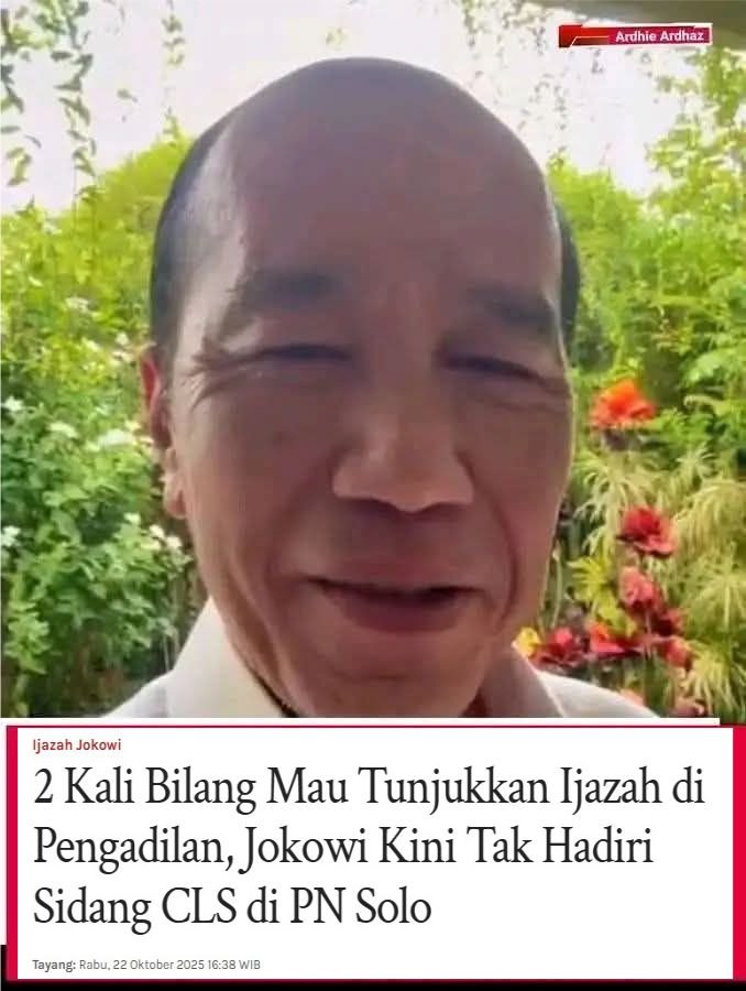 Terbaru, ayah Wakil Presiden RI Gibran Rakabuming Raka itu absen dalam sidang mediasi gugatan Citizen Lawsuit (CLS) terkait dugaan ijazah palsu di Pengadilan Negeri (PN) Surakarta, Selasa (21/10/2025).