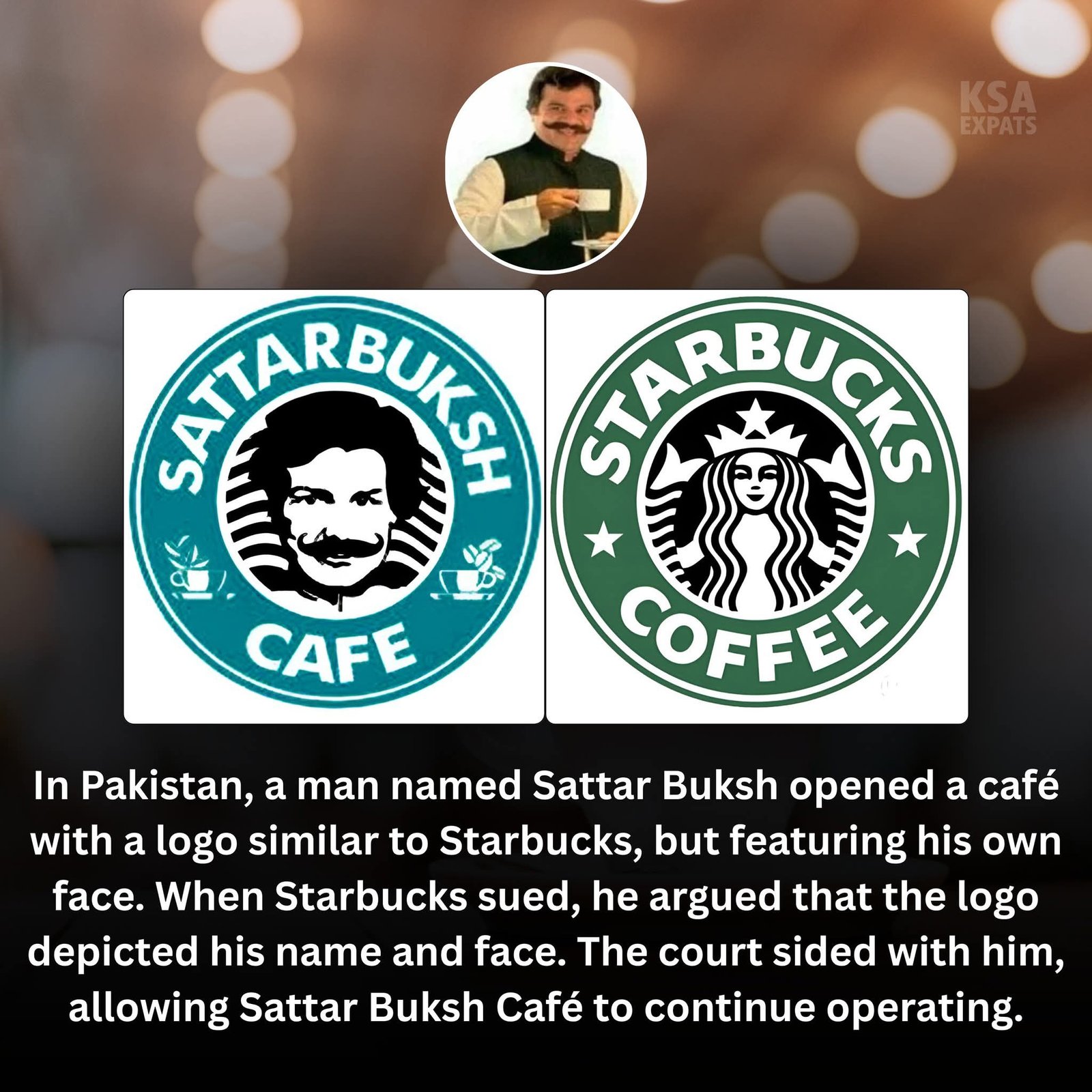 Di Pakistan, seorang pria bernama Sattar Buksh membuka kafe dengan logo yang mirip dengan Starbucks, tetapi menampilkan wajahnya sendiri.