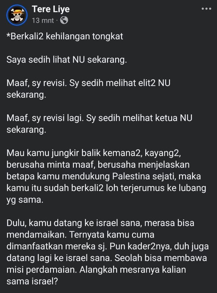 Maaf, saya revisi lagi. Saya sedih melihat ketua NU sekarang.