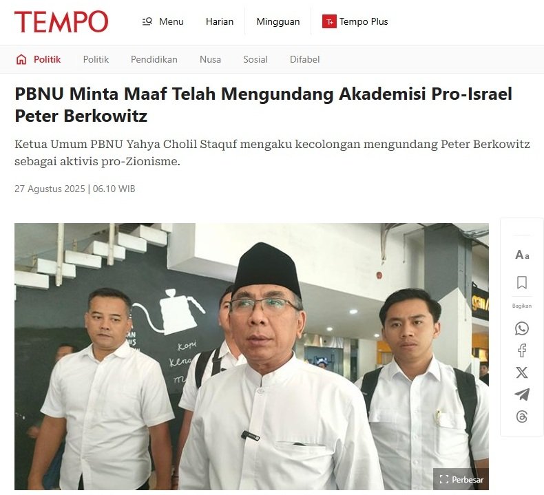 *PBNU kecolongan? Lah wong Si Zionis itu sohibnya Gus Yahya kok… itu diposting sendiri oleh situs NU online. Jejak digitalnya masih ada (lihat ss di bawah).