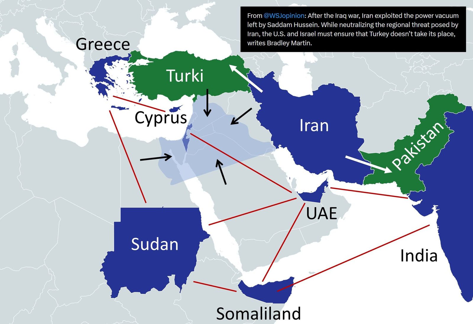 Tetapi geopolitik selalu berubah. Israel dan media Barat juga secara aktif memainkan sentimen “setelah Iran, Turki” (seperti kliping Wall Street Journal yang saya letakkan di peta).