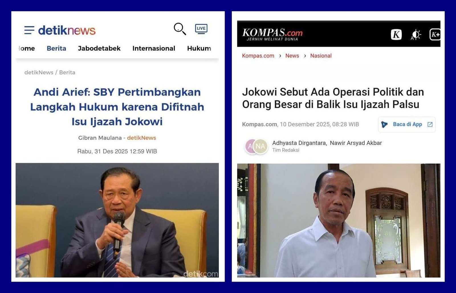 “Yang membuat ijazah saja sudah menyampaikan asli, masih tidak dipercaya, gimana. Dan yang saya lihat ini memang ada agenda besar politik, ada operasi politik, yang sehingga bisa sampai bertahun-tahun enggak rampung-rampung,” ujar Jokowi, dikutip dari Kompas TV, Selasa (9/12/2025) malam.