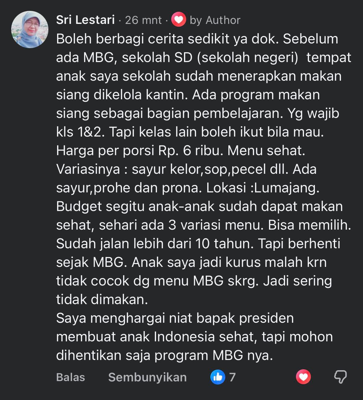 Sebuah SD negeri di Lumajang pernah punya program makan siang sehat: