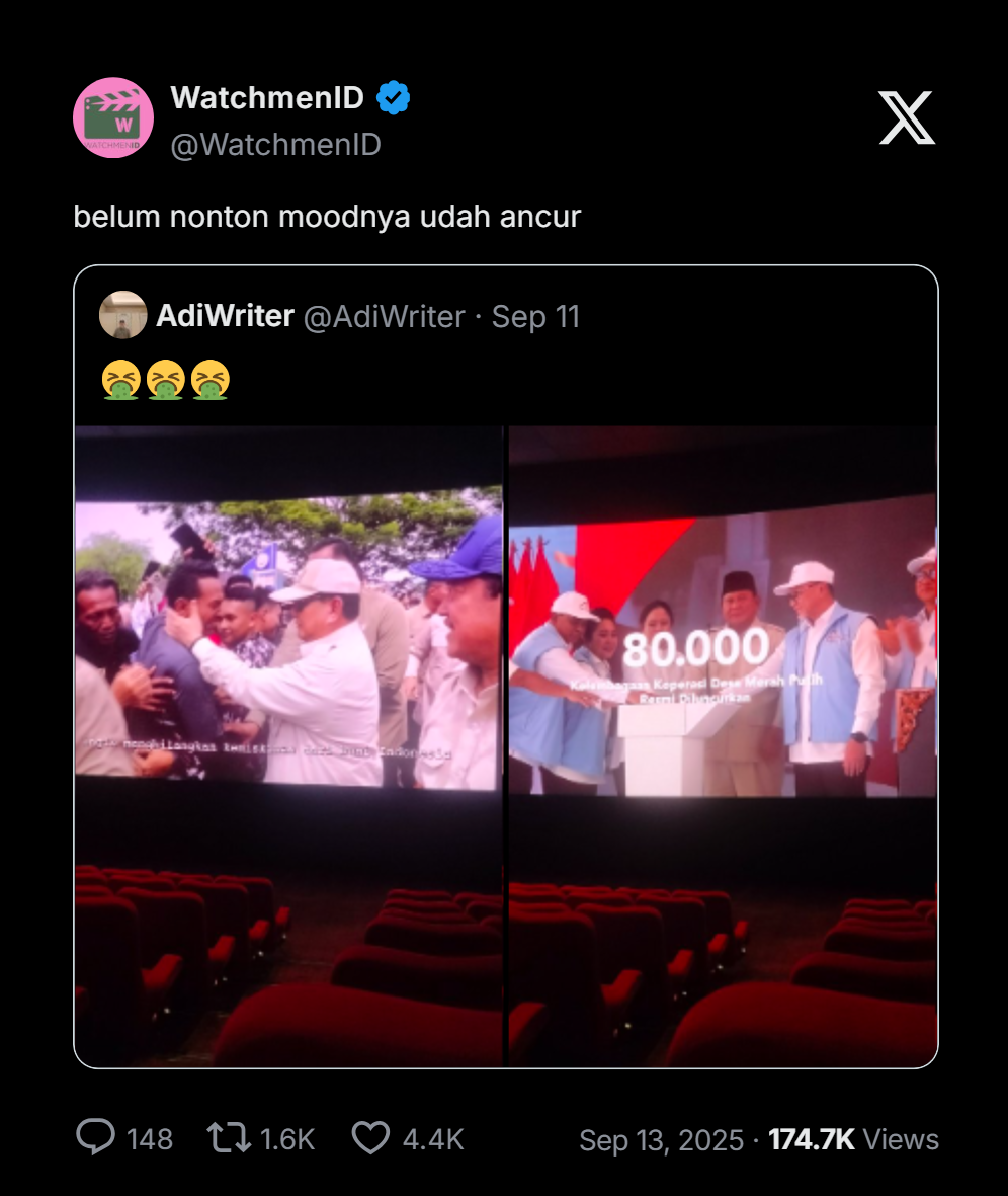 “belum nonton moodnya udah ancur,” komen akun X @WatchmenID.