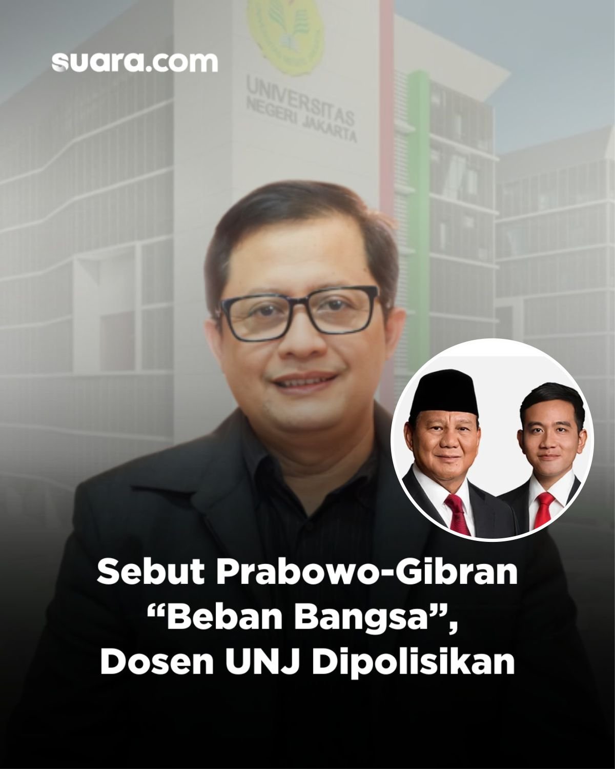 Dosen Universitas Negeri Jakarta (UNJ) Ubedilah Badru dilaporkan ke Polda Metro Jaya, buntut pernyataannya yang menyebut Prabowo Subianto Gibran Rakabuming Raka sebagai beban bangsa.