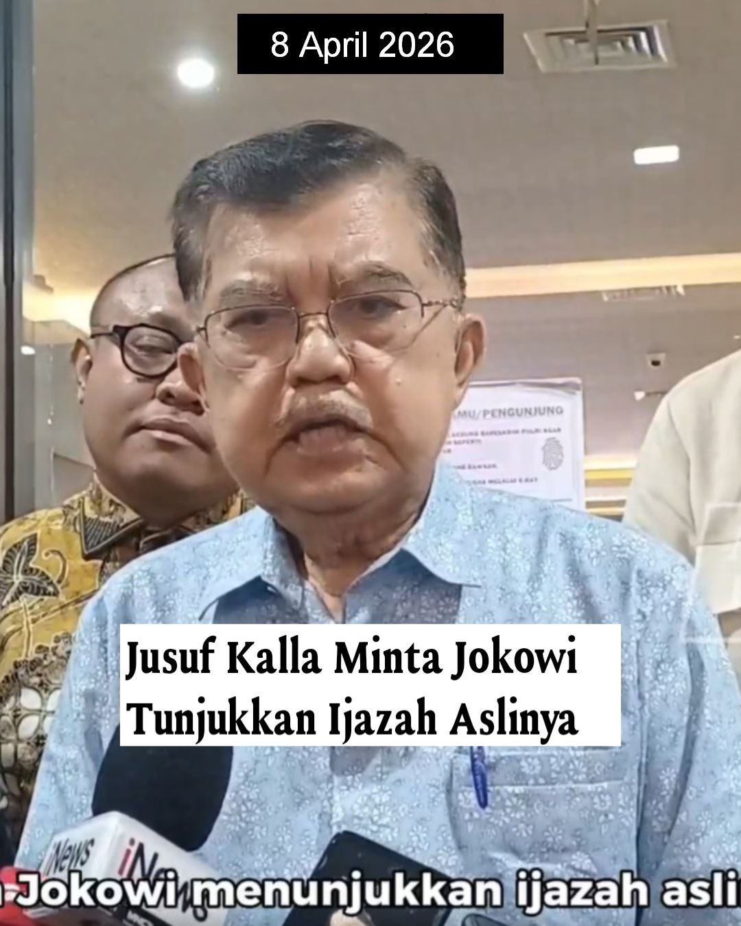 Hal tersebut diungkapkan Jusuf Kalla saat mendatangi Bareskrim Polri untuk melaporkan Rismon Sianipar atas tudingan mendanai isu ijazah palsu Jokowi, Rabu (8/4/2026).