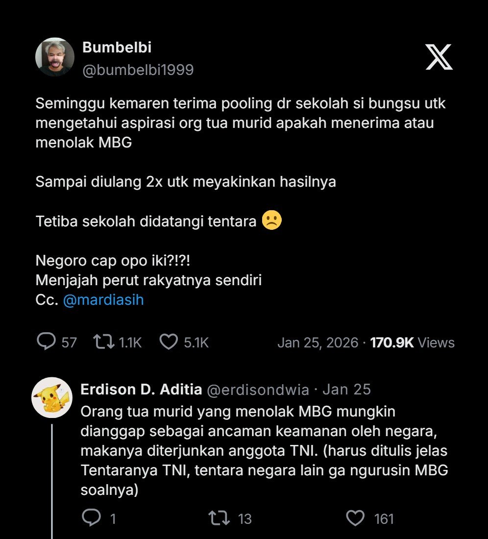 Cerita orang tua murid terkait MBG di sekolah anaknya, dituturkan akun X @bumbelbi1999: