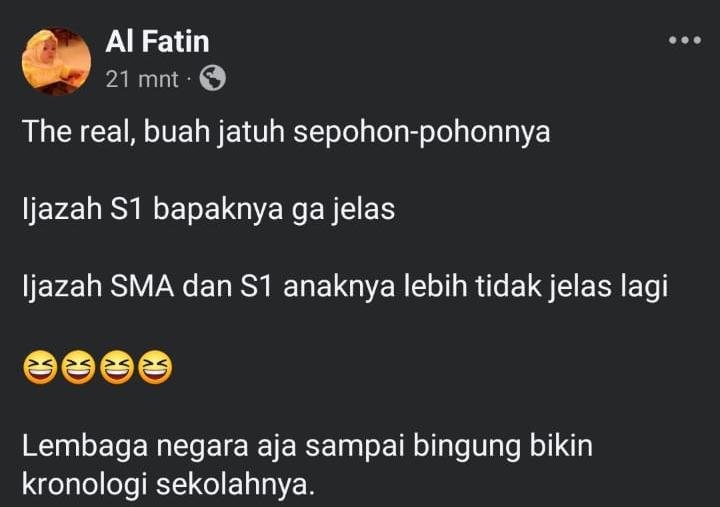 Ijazah SMA dan S1 anaknya lebih tidak jelas lagi