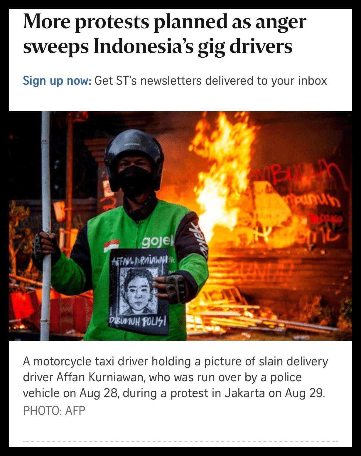 Saya tidak menemukan berita ini di media-media dalam negeri. Bloomberg, media yang berbasis di New York, mewawancarai ketua persatuan Ojol Indonesia.