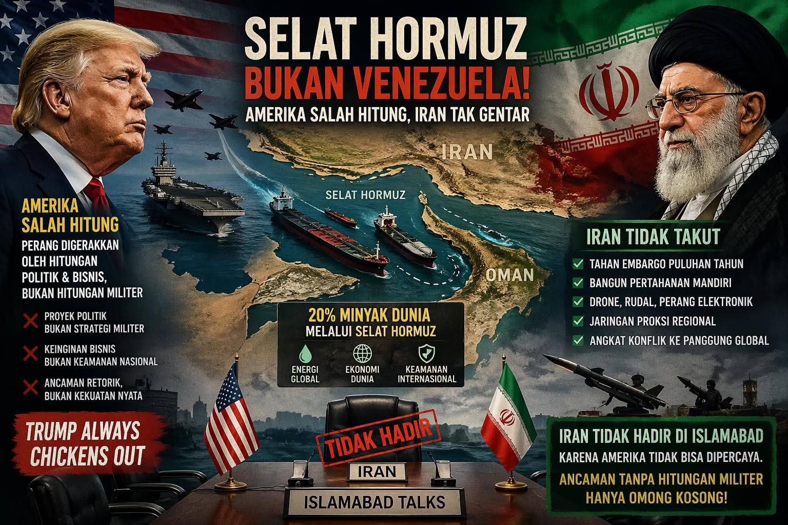 Teheran membaca satu realitas strategis: operasi Amerika terhadap Iran tidak digerakkan oleh kalkulasi militer yang matang, melainkan oleh logika politik dan bisnis. Karena itu ancaman Washington tidak lagi menimbulkan gentar.