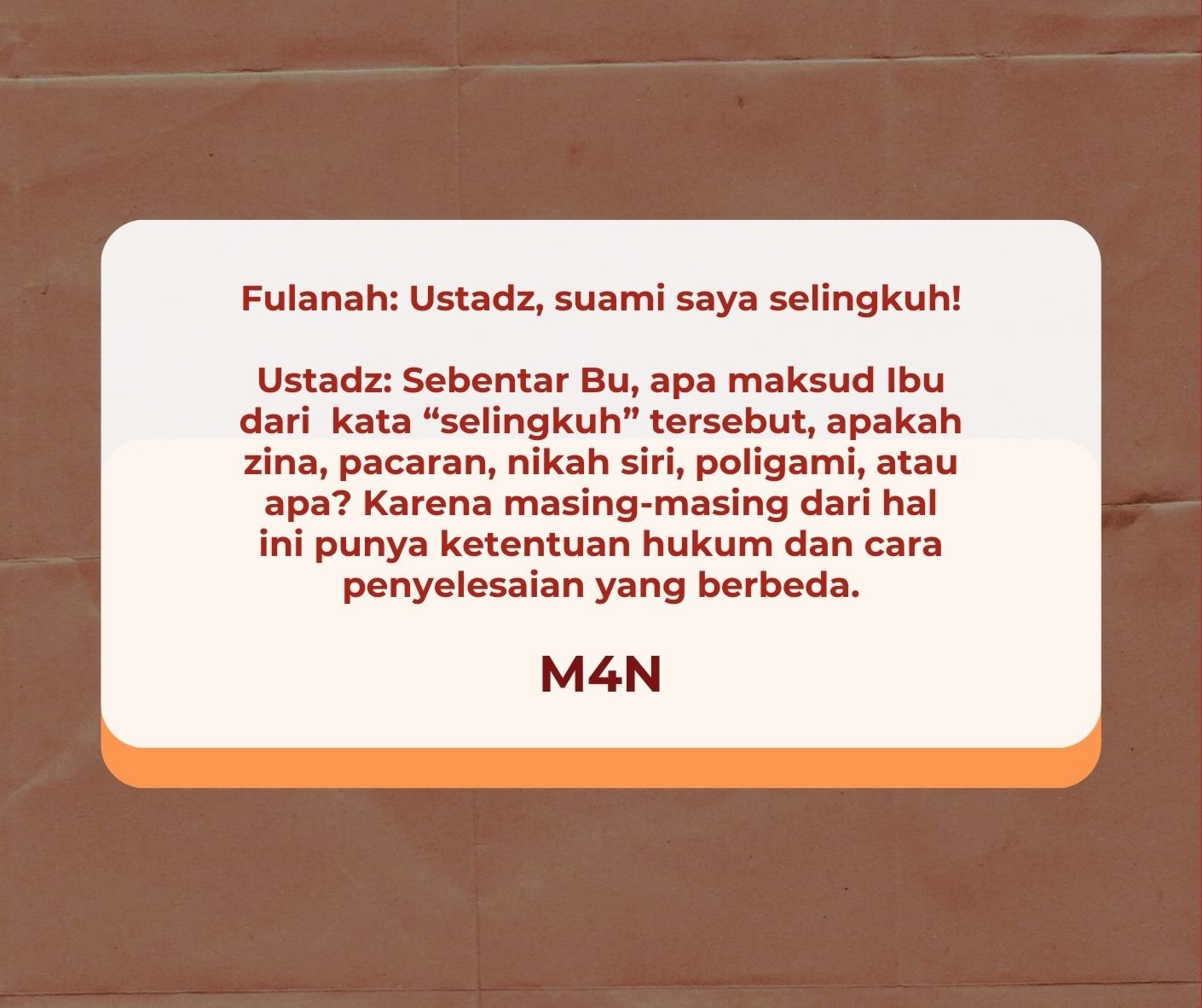 Melanjutkan kembali tulisan saya sebelumnya, bahwa kata “selingkuh” itu tidak bisa digunakan untuk menetapkan hukum syariat atasnya, karena kata itu terlalu luas cakupannya dan tidak jelas batasannya, padahal hukum itu (baik berupa qadha maupun fatwa) hanya diberikan pada sesuatu yang jelas batas dan cakupannya.