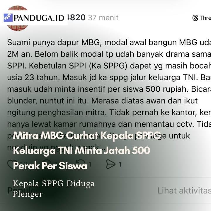 Seorang netizen di Threads curhat suaminya mengeluarkan modal Rp 2 miliar untuk membangun SPPG.