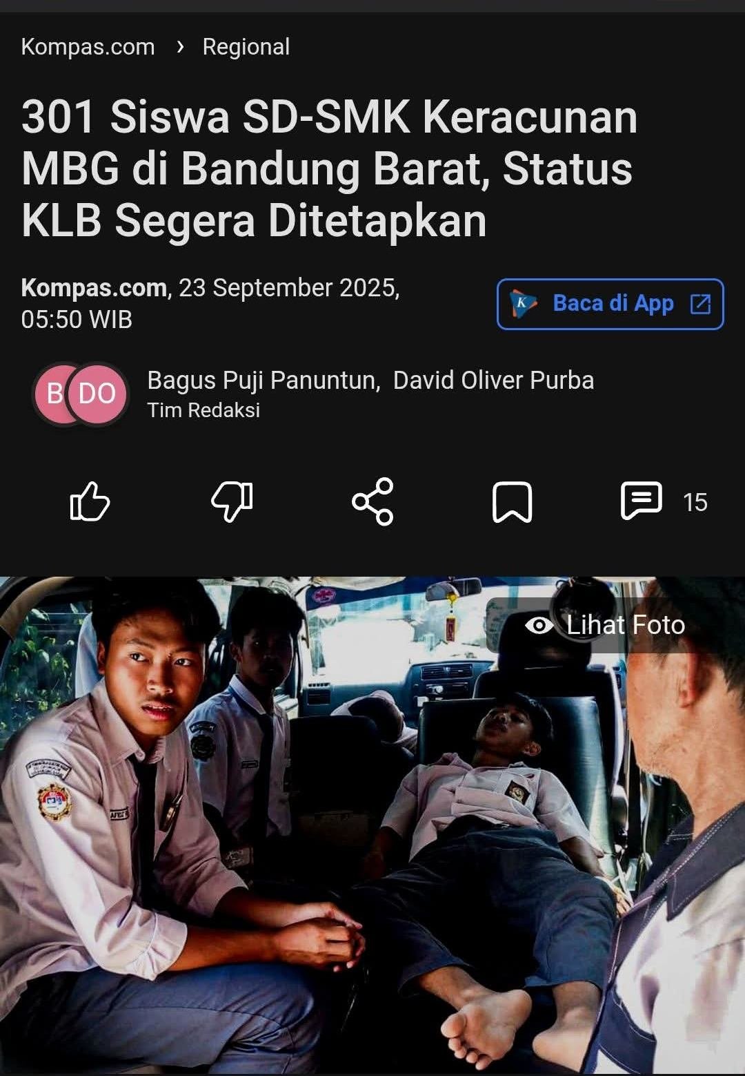 terus lagi yang keracunan cuma SMA SMK. TK, SD, SLB aman. udah jelas ini jelas bangeettt. yang masak kemungkinan warga sekitar yang pengen cepet beres masaknya. masak ready jam 4 pagi semuanya 3500 porsi.