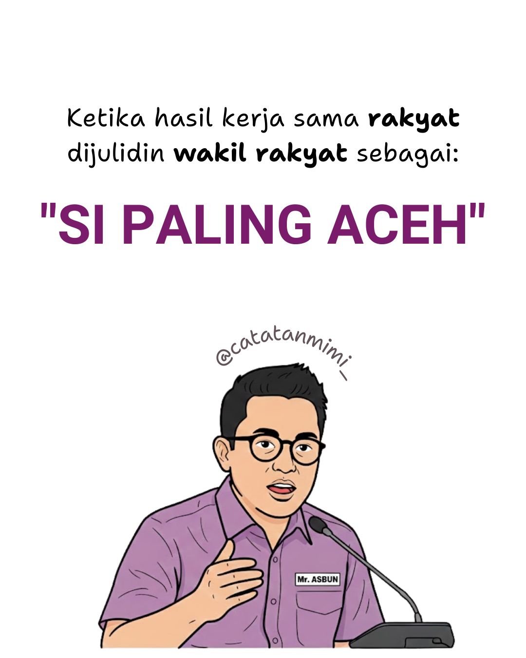 Ketika semua bahu membahu, rakyat, TNI, Basarnas, relawan, eh, tiba-tiba ada pejabat anomali si paling iri dan tersaingi yang julid karena rakyat yang patungan hinggal milyaran dengan istilah “si paling Aceh.”