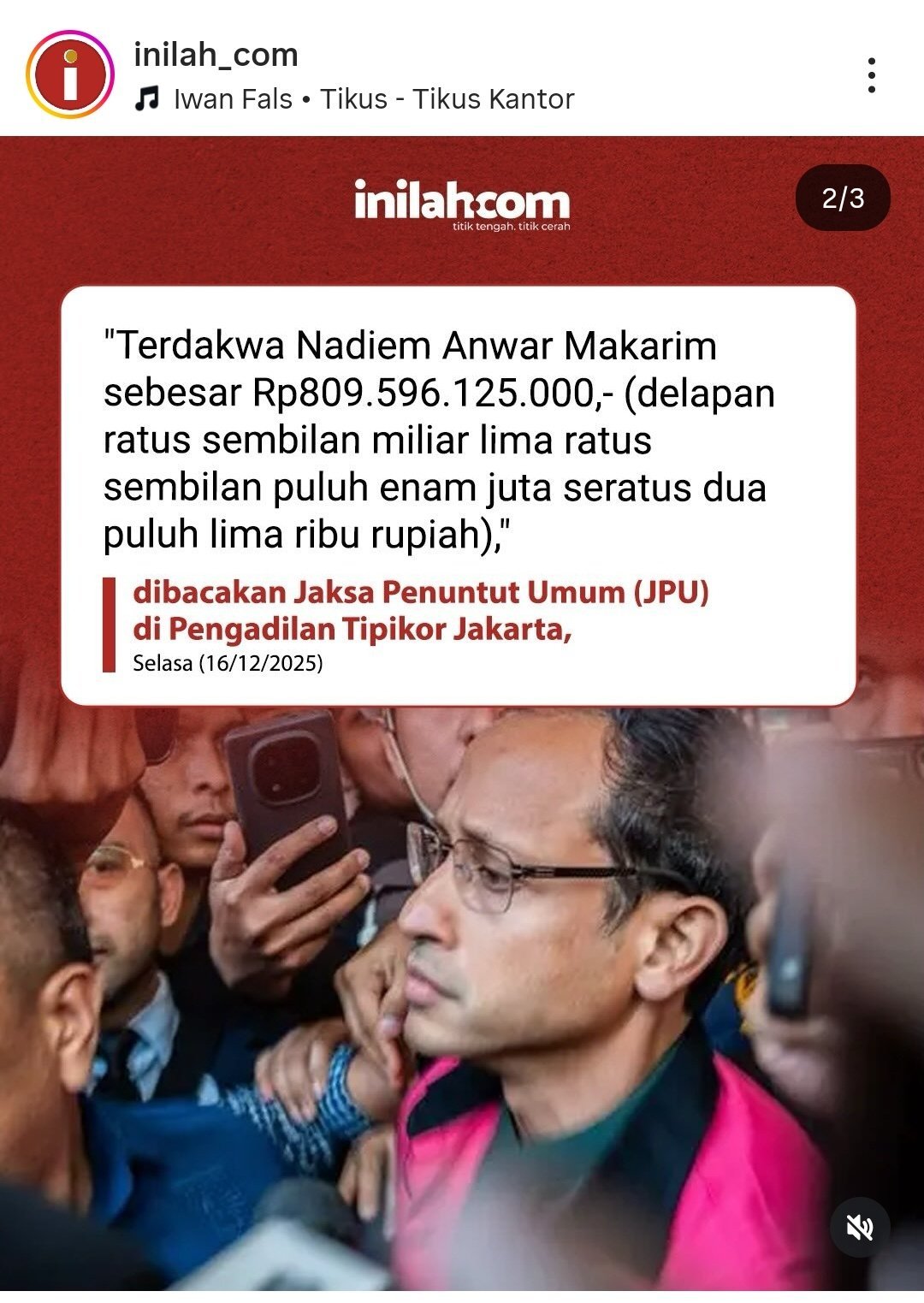 “Terdakwa Nadiem Anwar Makarim sebesar Rp 809.596.125.000,” terang jaksa Roy Riady di Jakarta, Selasa (16/12/2025).