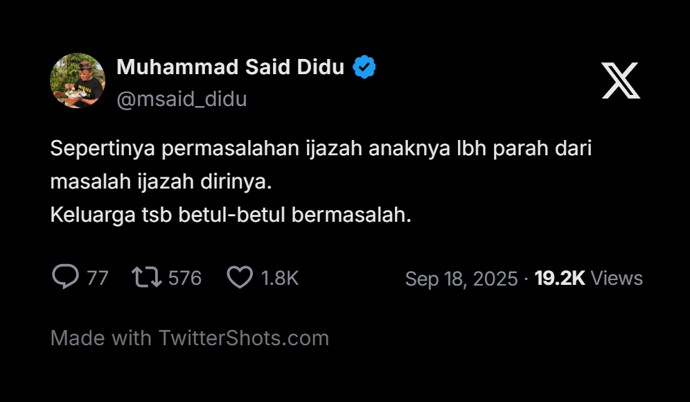 “Sepertinya permasalahan ijazah anaknya lbh parah dari masalah ijazah dirinya.
