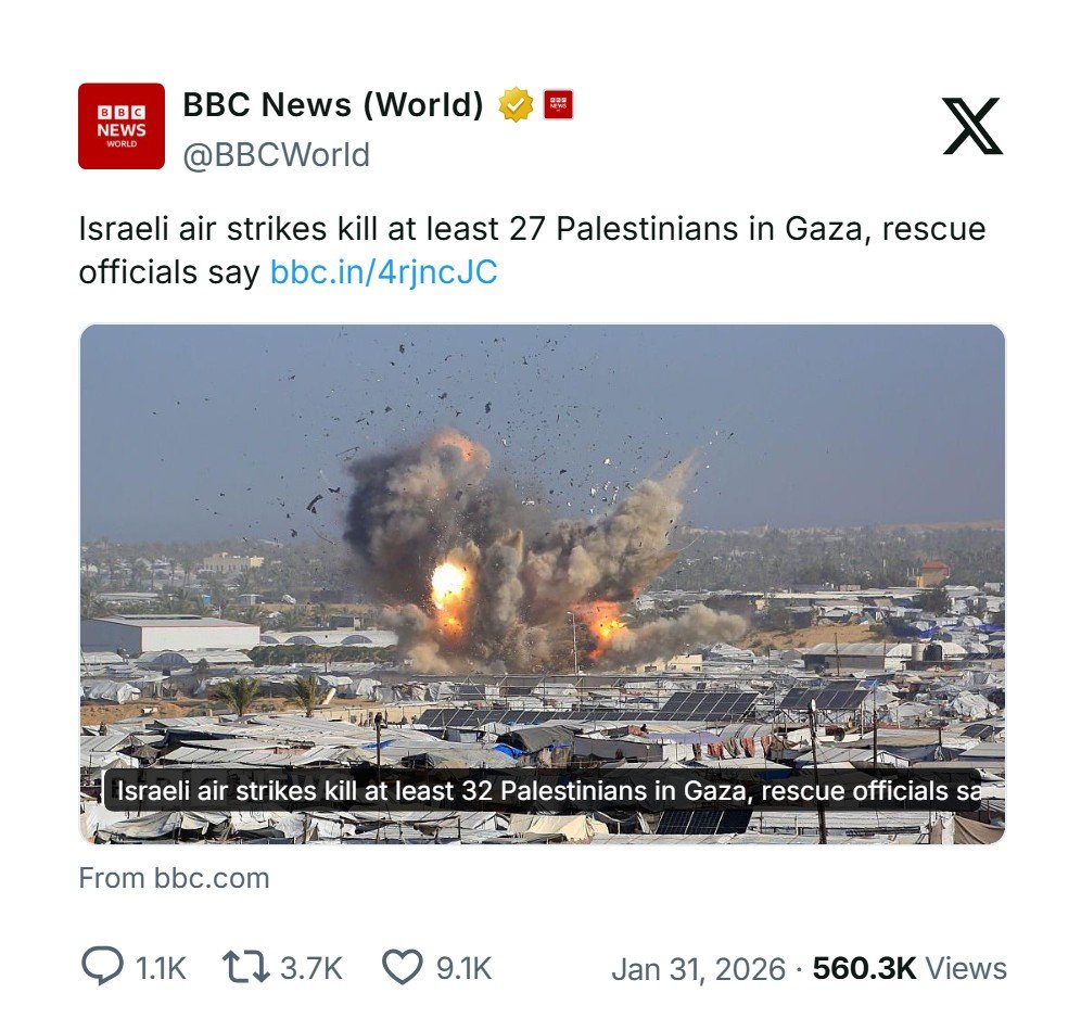 *Berita ini dilaporkan oleh BBC World, serangan terjadi kurang dari 24 jam lalu. Korban sejauh ini terus bertambah, 27, 32, angka persisnya setelah puing-puing diangkat.