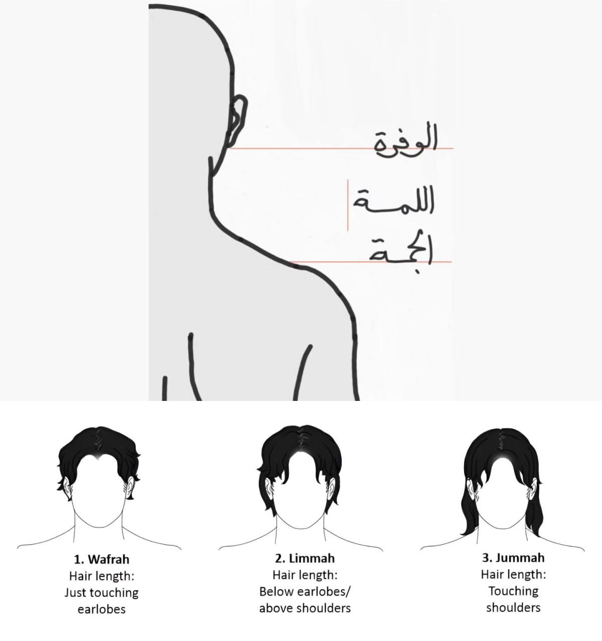 Dalam kitab Syamail disebutkan bahwa “style” rambut Nabi ﷺ itu kadang wafrah (sampai menyentuh telinga), kadang limmah (lebih panjang dari wafrah namun lebih pendek dari jummah), dan kadang jummah (hingga menyentuh pundak).