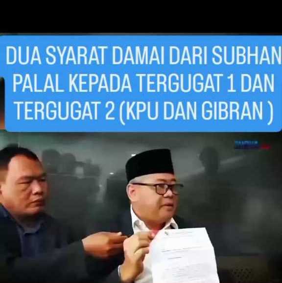 Subhan Palal, penggugat ijazah SMA milik Gibran Rakabuming Raka sebesar Rp125 triliun ke PN Jakpus siap berdamai dan mencabut gugatannya.