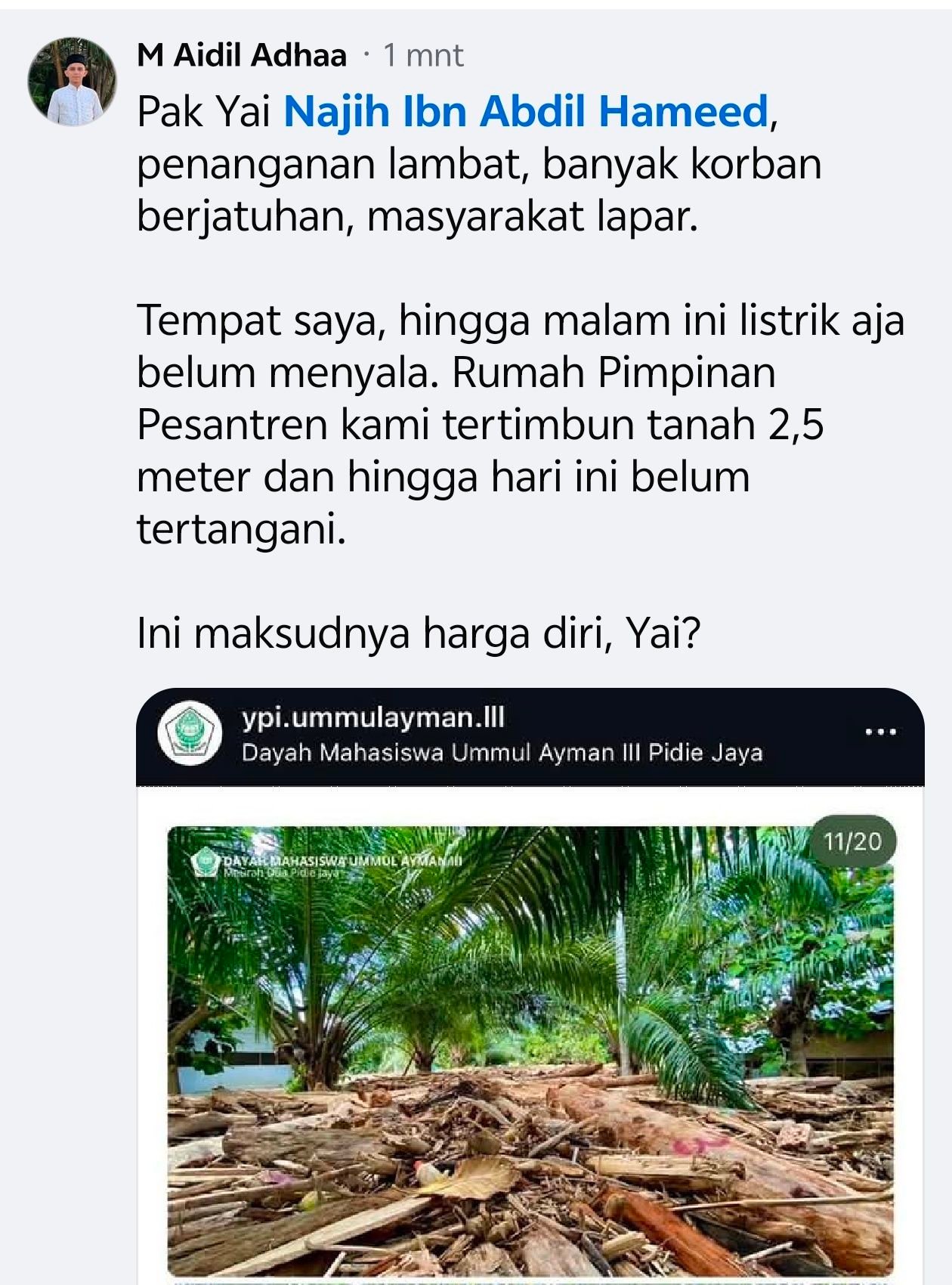 “Pak Yai Najih Ibn Abdil Hameed, penanganan lambat, banyak korban berjatuhan, masyarakat lapar.