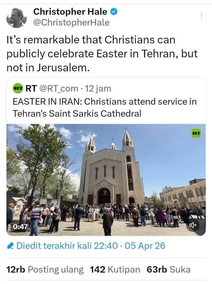 “Sungguh luar biasa bahwa umat Kristen dapat merayakan Paskah secara terbuka di Teheran, tetapi tidak di Yerusalem.”