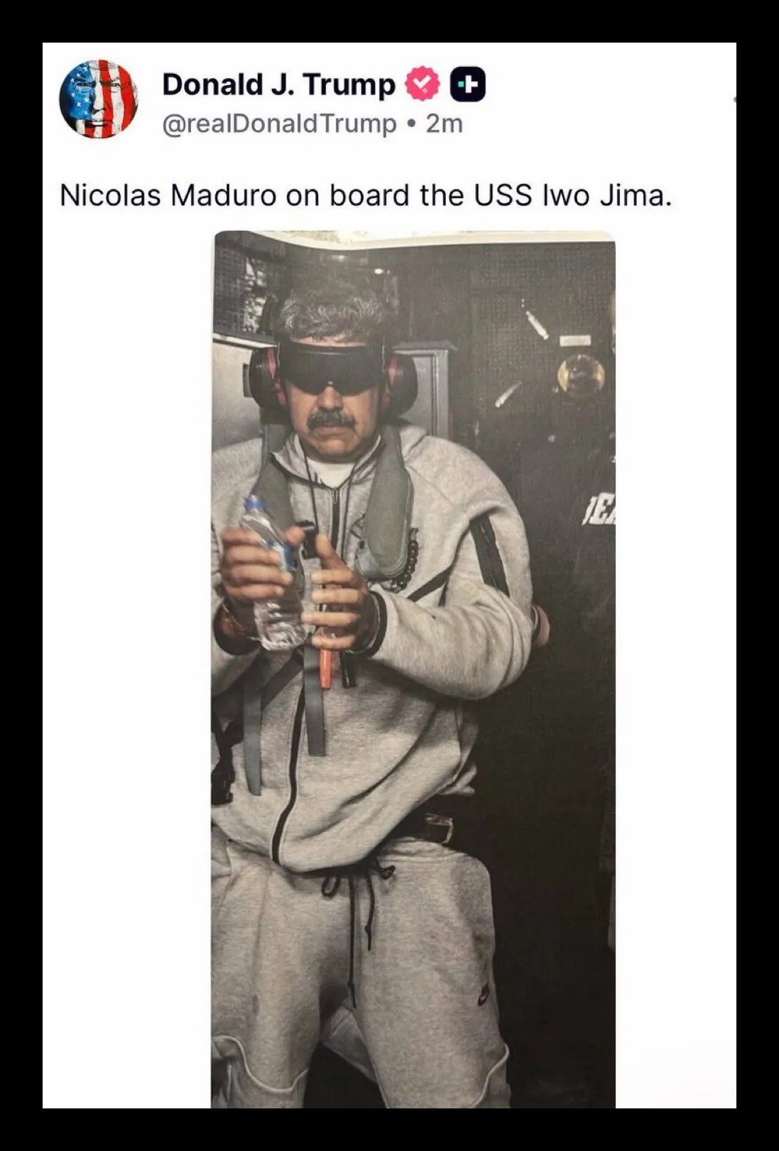 Menurut Associated Press, pagi ini, Amerika Serikat melakukan operasi militer yang mengejutkan di Venezuela yang berakhir dengan penangkapan Presiden Nicolás Maduro dan istrinya, Cilia Flores. AP melaporkan bahwa beberapa ledakan dan pesawat terbang rendah terdengar sekitar pukul 2 pagi di Caracas (Ibu Kota Venezuela), dan bahwa Maduro dan Flores dibawa dari rumah mereka di pangkalan militer dan diterbangkan keluar negeri. AP melaporkan bahwa Trump mengatakan mereka berada di atas kapal perang AS Iwo Jima menuju New York, tempat pemerintah berencana untuk menuntut mereka. AP juga mencatat bahwa otoritas hukum untuk operasi ini tidak segera jelas, dan secara eksplisit membandingkannya dengan invasi AS ke Panama tahun 1990 dan penangkapan Manuel Noriega.