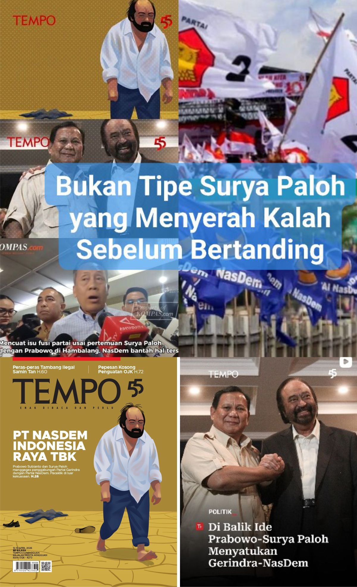 Rumor bergabungnya (fusi parpol) NasDem dengan Gerindra, dibahas majalah TEMPO pekan ini, dan memang tidak banyak yang percaya.